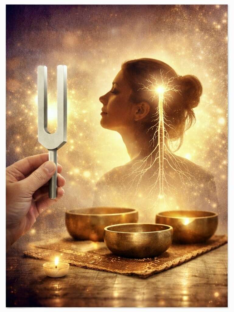 Le corps humain est composé en grande partie d’eau, ce qui en fait un excellent conducteur vibratoire. Lorsque nous sommes exposés à un son — bols chantants, diapasons, gongs ou voix — le corps ne fait pas que l’entendre, il le ressent.
